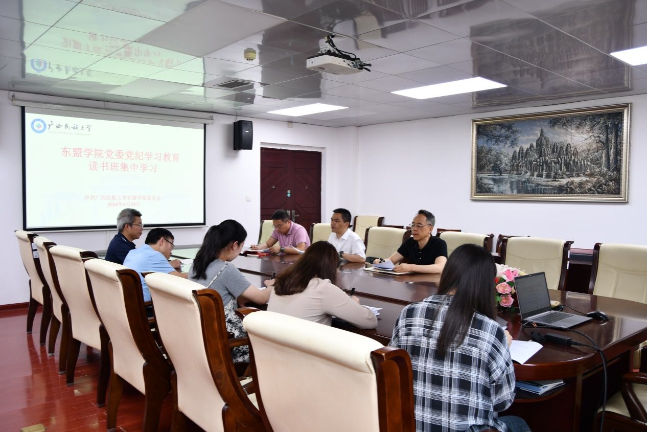 4月28日下午,betway必威西汉姆联党纪学习教育读书班在betway必威西汉姆联503会议室举行开班动员。学院党委书记、常务副院长、中国-东盟区域国别研究院院长叶兴艺主持,学院领导班子成员副院长滕成达、葛红亮、院长助理陈丙先、教工党支部书记潘岳、研究生党支部书记覃婧婧、组织员李俊及研究生秘书秦霞等参加学习和研讨。 叶兴艺作开班动员讲话。他强调,中共中央办公厅印发的《关于在全党开展党纪学习教育的通知》指出,为深入学习贯彻修订后的《中国共产党纪律处分条例》(以下简称《条例》),经党中央同意,自2024年4月至7月,在全党开展党纪学习教育:“要原原本本学,坚持个人自学与集中学习相结合,紧扣党的政治纪律、组织纪律、廉洁纪律、群众纪律、工作纪律、生活纪律进行研讨,推动《条例》入脑入心”。
