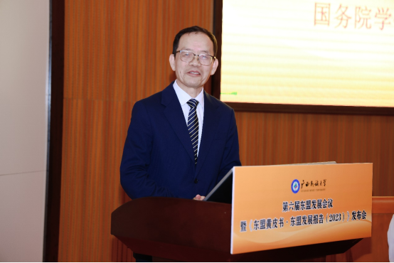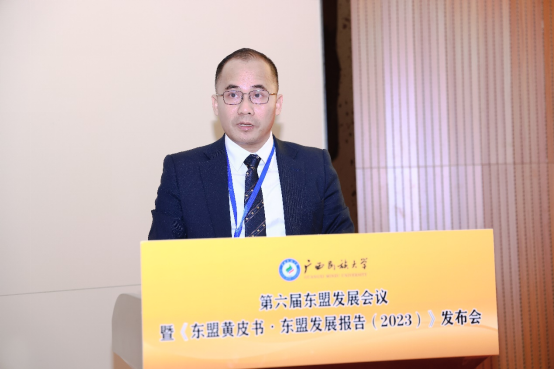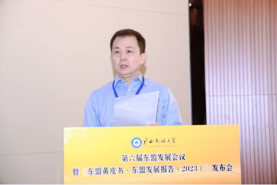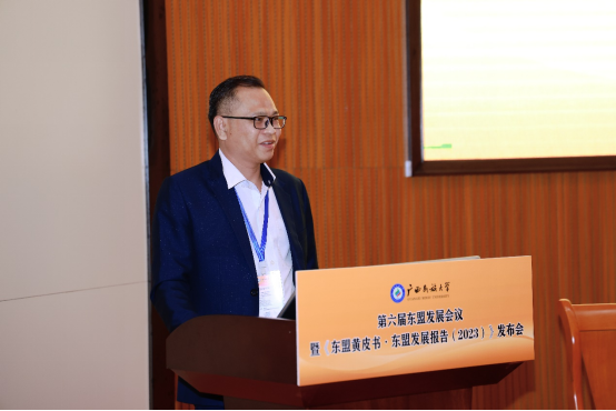 《东盟黄皮书·东盟发展报告(2023)》发布揭幕 在大会主旨演讲环节,浙江师范大学非洲研究院院长、国务院学位委员会区域国别学学科评议组秘书长刘鸿武,中国东南亚研究会名誉会长、广西民族大学相思湖讲席教授庄国土,广西社科院副院长、中国东南亚研究会副会长范祚军,北京大学、泰国法政大学教授杨保筠,北京大学区域与国别研究院副院长、国务院学位委员会区域国别学学科评议组召集人翟崑,北京语言大学国别和区域研究院院长、国务院学位委员会区域国别学学科评议组成员、教育部高校国别和区域研究工作秘书处主任罗林分别做《“中非达累斯萨拉姆共识”背景、内容及意义》《区域国别视角下的东南亚研究:东盟模式的成功及其启示》《打造面向东盟的国内国际双循环市场经营便利地》《关于东盟发展研究的若干思考》《区域国别学视角下的东南亚研究再思考》《构建“问题导向”的区域国别学交叉学科新生态》的学术演讲。
