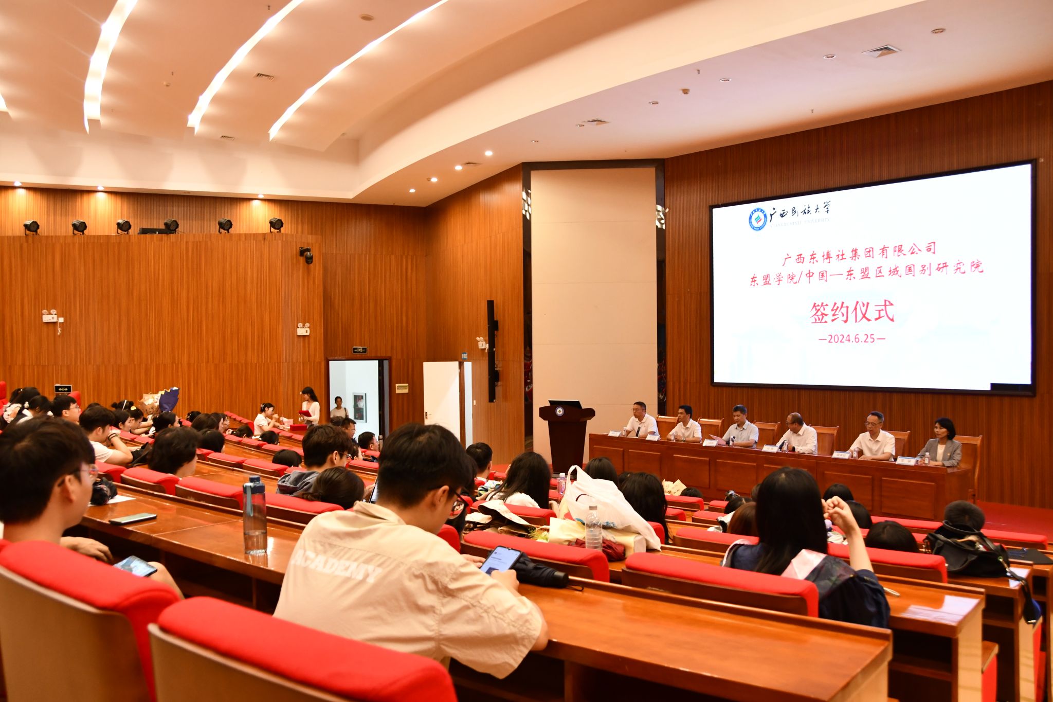 【大学生通讯社报道】6月25日,东博社奖学金颁奖仪式在广西民族大学思源湖校区图书馆报告厅举行。学校党委常委、副校长吕俊彪,东博社集团有限公司董事长、总编辑高航,东博社以及betway必威西汉姆联有关单位负责人出席颁奖仪式。betway必威西汉姆联/中国—东盟区域国别研究院全体师生到场参加。