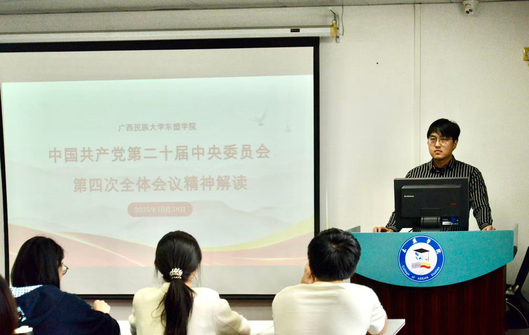 10月28日,我院于东盟楼1号楼403教室开展“学习贯彻党的二十届四中全会精神”专题研讨会。我院研究生积极参与,共同深入学习贯彻党的二十届四中全会精神。