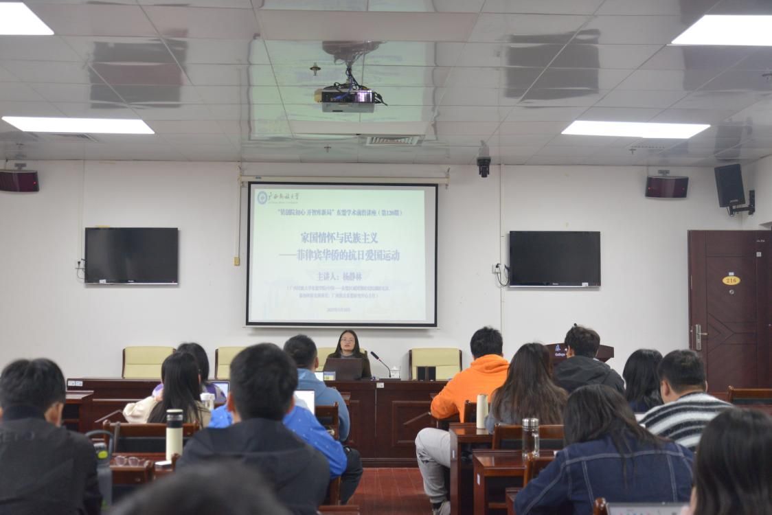 我院杨静林老师主讲菲律宾华侨抗日爱国运动与家国情怀2025-03-25 17:55 摄影:张政 作者:陆莹 (点击:)