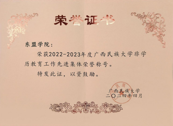 4月29日,广西民族大学继续教育工作会议在相思湖校区科技楼报告厅举行,总结继续教育工作的成果,部署2024年工作。本次会议表彰了一批2022-2023年度非学历教育工作先进集体和先进个人,betway必威西汉姆联荣获“2022-2023年度广西民族大学非学历教育工作先进集体”荣誉称号,这是自2016年以来,学院连续四次获此殊荣。